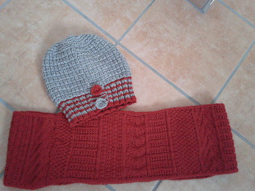 Und auch hier gab's - weil noch was übrig war - eine Mütze dazu, nach einer Drops-Anleitung. Die Drops Lima ist echt superschön und die rote pillt auch nicht - weder die Jacke noch der Cowl.