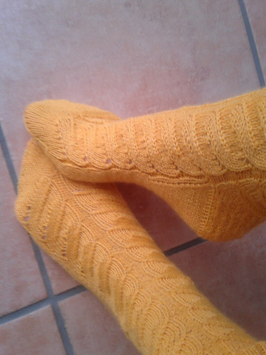 Würde ich sie nochmal stricken, würde ich das Motiv glaube ich nur auf der Vorderseite des Fußes stricken und hinten Rippen oder so.