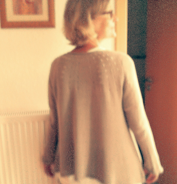 Finished body. Did lower garterstitch Band and Front Band with same needle size as I was to lazy to go upstairs for smaller needle. Picked up 3 stitches per 4 rows for front bands.