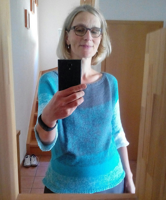 Beim True Friends siehst Du, dass ich den rechten Ärmel zuerst angefangen habe, da ist noch ein bissle länger blau drin. Stört mich aber nicht, ich würde mir den Stress mit dem Abwickeln nicht machen.