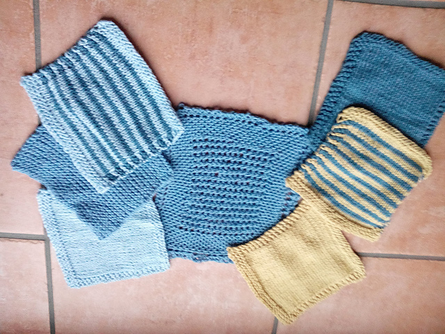 Außerdem gibt es auf Ravelry per Juni 2018 13299 Anleitungen für die unterschiedlichsten Dishcloth-Varianten >> -reichlich Auswahl also. Am beliebtesten ist "Grandmothers Favorite" >> , ein schräg gestrickter Lappen in kraus rechts.