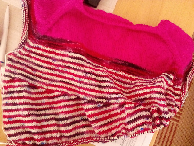 Der Pulli aus Verlaufsgarn gefällt mir sehr gut! Ich habe mir auch 12 Socken dieses Jahr vorgenommen, aber das muss im Sommer pausieren!
