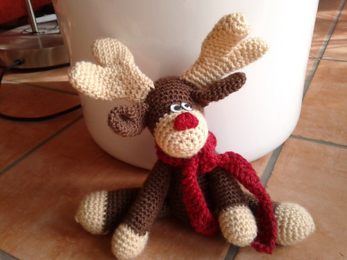 Den oberen Elch>> (nach dieser kostenlosen Anleitung >>) habe ich mal für einen Swap gehäkelt, meine Partnerin war ein großer Elch-Fan.