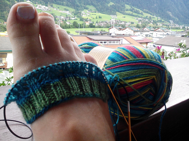 Die Socken sind hauptsächlich in unserem Wanderurlaub im Zillertal entstanden, und ich habe sogar noch ein zweites Paar auf die Nadeln genommen- guckstu:
