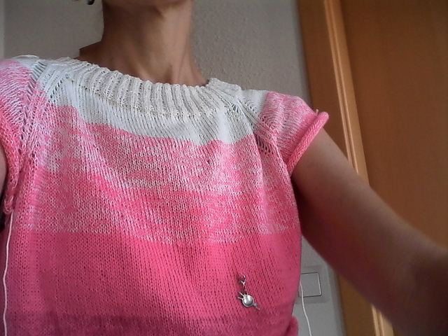 Ja, ich bin ja ins "Bobbelwolleloch" gefallen diesen Sommer >> und habe schon ein Oberteil fertig gestrickt. Im letzten Jahr waren es auch schon zwei Oberteile, die ich gerne im Sommer trage und deshalb plante ich, aus dem Pink-Grau-Weißen Bobbel, den ich noch im Stash hatte, auch noch ein Oberteil zu fertigen.