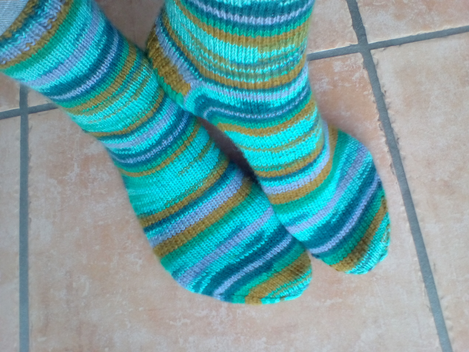 As I guessed last week >>, I finished my first pair of socks in 2019>> on Tuesday. I quite like how they turned out, though I still like the fabric I get from slightly smaller needles better.