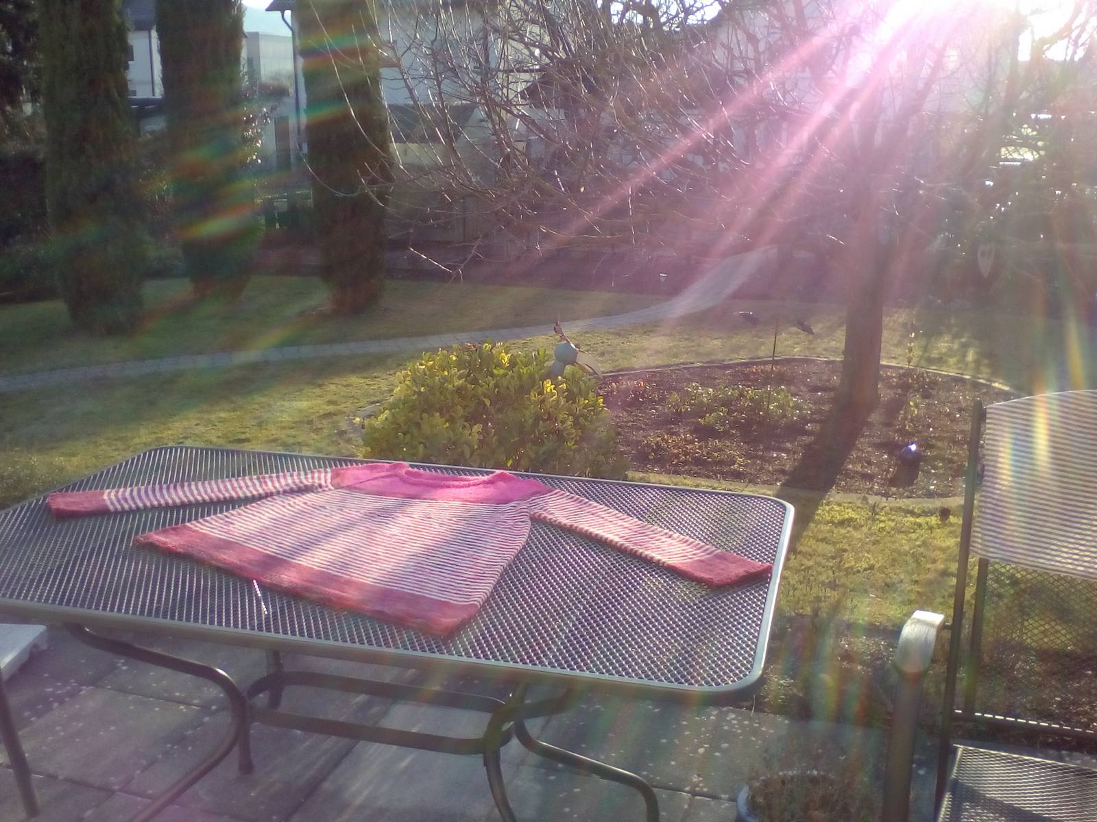 | My Breathing Space sweater drying in the winter sun on our garden table |