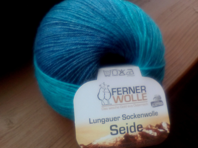 Allerdings: Ich habe noch die Souvenirwolle aus dem letzten Zillertalurlaub, Ferner Sockenwolle mit Seide * >> . Und ich habe noch 3 Knäul Baumbusgarn * >>, die könnte ich kombinieren und daraus einen zweiten Reagan >> stricken, die Ärmel in dem Bambusgarn, den Laceteil in der blauen Seide (die hat noch einen Verlauf).