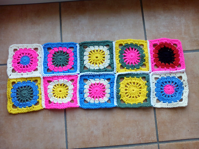 Also habe ich an Ostern angefangen - ich verwende diese kostenlose Drops-Anleitung >> und plane im Moment, meine Decke >> so ca. 120 x 160 cm groß zu machen - das wären so ca. 9 x 12 Quadrate... Aber ich will mal schauen - wichtig ist mir vor allem, dass ich meinen Poly-Stash aufbrauche, denn außer für Decken mag ich das Zeugs nicht wirklich - ich weiß nicht, warum ich da vor Jahr und Tag mal soviel erstanden habe...