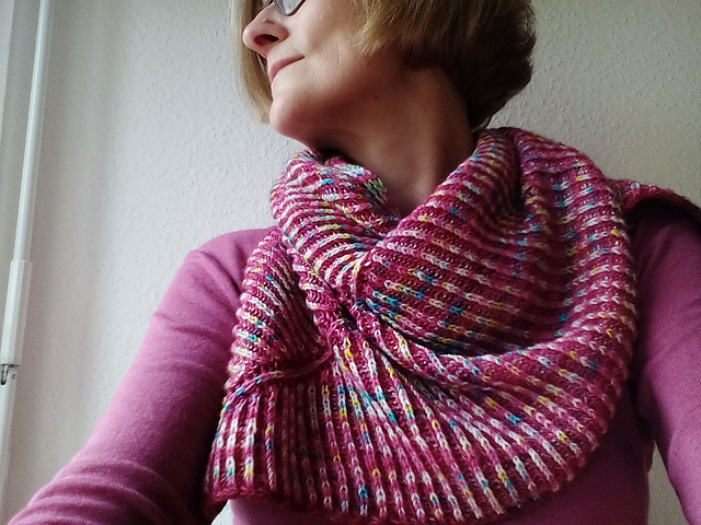 Gelernt habe ich, wie toll einfache Krausrippen in einer tollen Wolle aussehen können- ich könnte mir sehr gut vorstellen, den Schal nochmal in einer ungefärbten hellgrauen oder hellbeigen Wolle zu stricken.