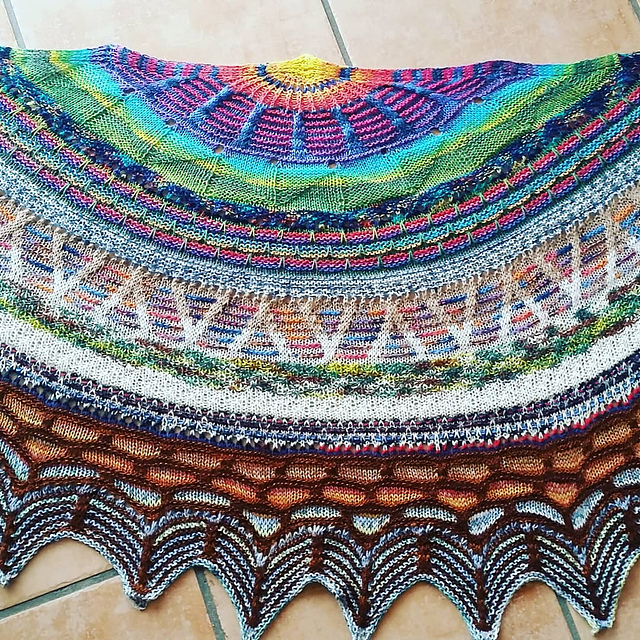 Nichtsdestotrotz waren natürlich die 4 Stränge Glitzerwolle, die ich da gefärbt hatte, umso wertvoller, weil weitere Wolle "dyed by Domic" wirds eher nicht geben. Also habe ich ziemlich lange nach dem "perfekten" Projekt gesucht und irgendwann den Exploration Station angefangen, den ich sehr gerne mag.