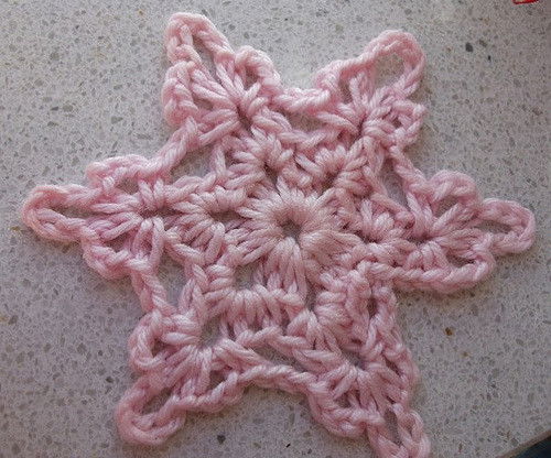 Auch diese Schneeflocke habe ich schon selbst gehäkelt >> - das war sogar schon 2009! Damals habe ich an einem Häkel-Swap teilgenommen und habe sehr tolle gehäkelte Sterne geschenkt bekommen, die sich an unserem Weihnachtsbaum super gemacht haben. Also wollte ich es selbst mal ausprobieren und war mit Lucys Anleitung sehr zufrieden - allerdings würde ich idealerweise etwas dünneres Garn verwenden, das rosa Garn war schon deutlich dicker als Sockenwolle - die wäre besser, oder halt sogar Baumwoll-Häkelgarn * >>