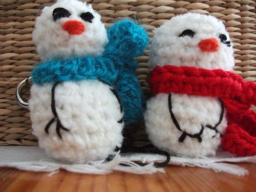 Diese Schneemänner sind mit 3 mm Häkelnadel gehäkelt.