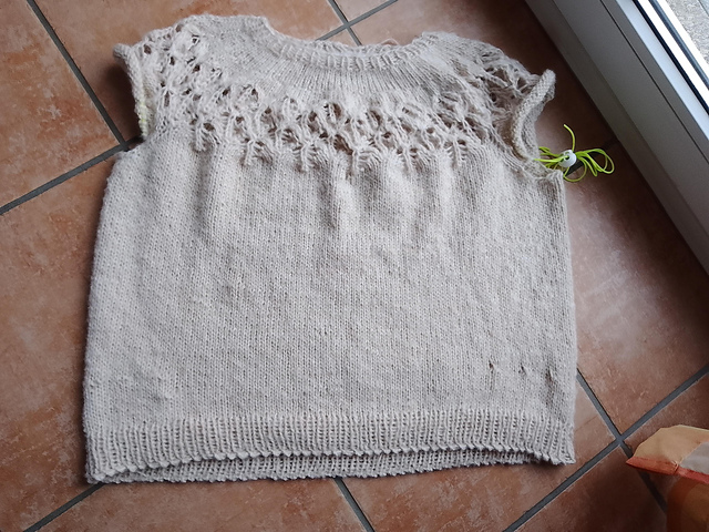 Ich bin schon ziemlich weit, fehlen nur noch die Ärmel, also bin ich zuversichtlich, dass ich meinen Plan, das gute Stück an Heiligabend zu tragen, auch umsetzen kann.