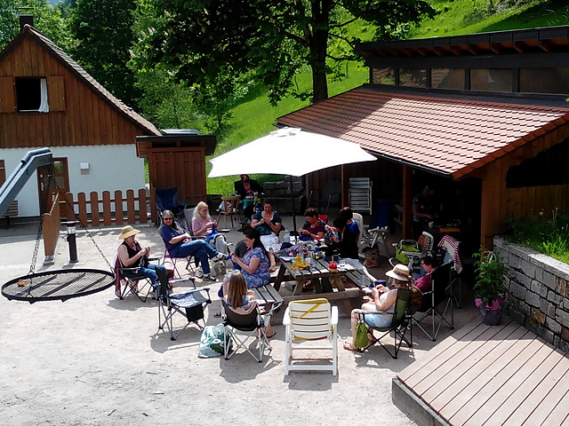Genauso wichtig wie der Marktplatz ist eine Möglichkeit, sich mit anderen Wolleverrückten autauschen zu können und zusammen zu stricken/häkeln/spinnen. Meist gibt es einen "gastronomischen" Bereich, in dem man auch einen Kaffee und vielleicht Kuchen oder andere leckere Snacks kaufen kann und natürlich dann Tische und Stühle, auf denen man sich niederlassen kann.