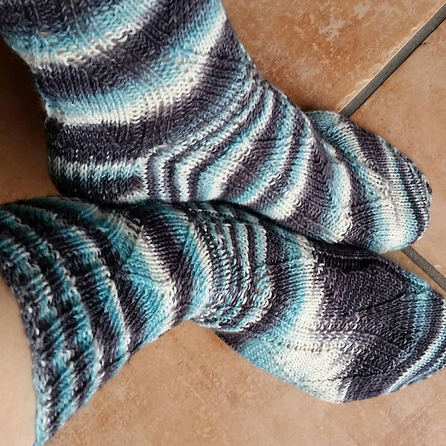Und noch ein weiterer Strang wurde zu einem Paar "männertauglicher" Socken >>, seit langem habe ich mal wieder ein Paar "Gundeln" >> gestrickt, und das Muster hat auch wirklich Spaß gemacht.
