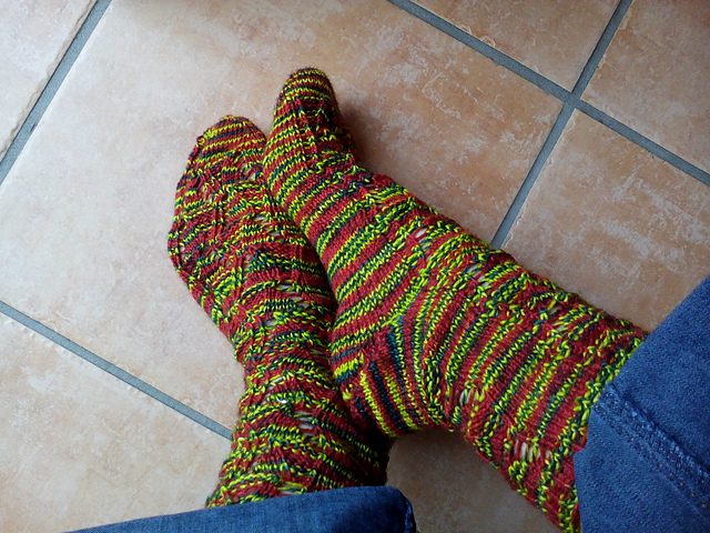 Diese Socken sind ein bissle ähnlich den Quarzonite-Socken, und ich habe sie 2014 zuletzt gestrickt >>