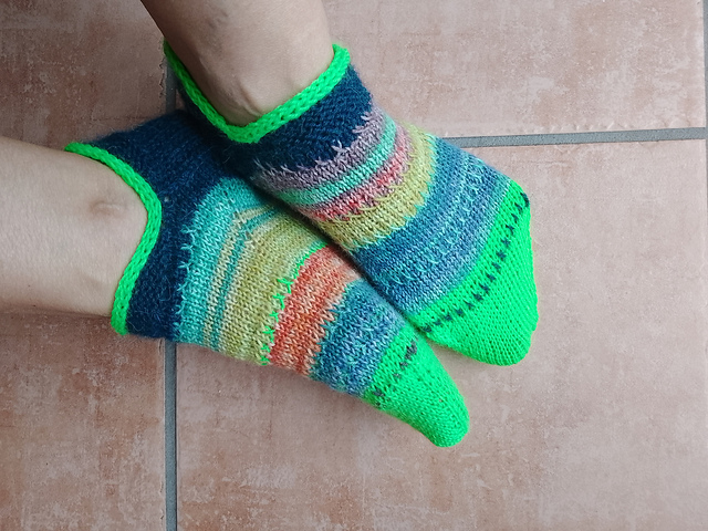 Am 1. Oktober hat Sockoween angefangen, und mein erstes Paar ist schon fertig! Ok, ja, sind (mal wieder) Utsubos, also nur Sneakersöckchen, die nur bis zum Knöchel gehen, die sind ja schnell gestrickt.