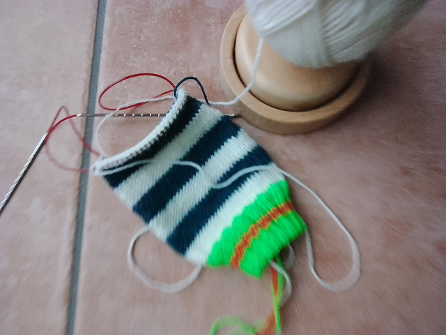 Aber zurück zu meinen Leuchtmoränen: Außer den Farben fand ich, dass diese "Kreuzstichnähte" von den Gred und Feorge Socken >> doch eine gute Idee wären, so Frankenstein-mässig.